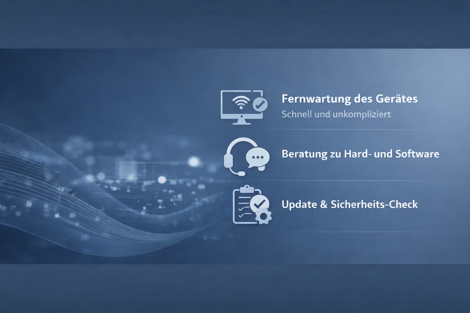 Statt Geräte einzuschicken oder lange Wartezeiten in Kauf zu nehmen, komme ich direkt zu Ihnen. Vor Ort lassen sich viele Probleme schneller und nachhaltiger lösen – besonders bei: